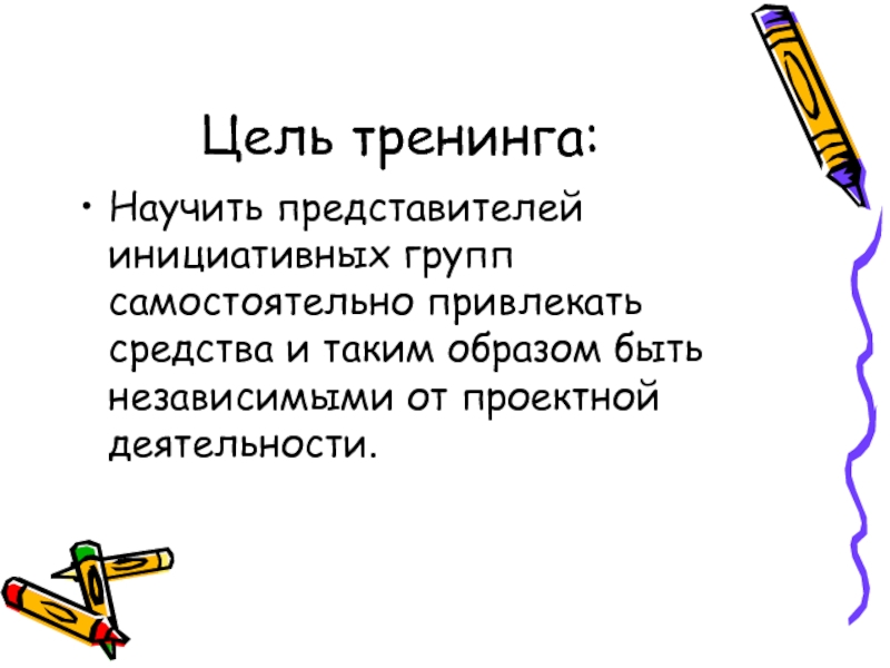 Научить представителей инициативных групп самостоятельно привлекать средства и таким