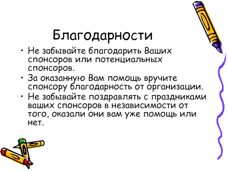 Не забывайте благодарить Ваших спонсоров или потенциальных спонсоров.