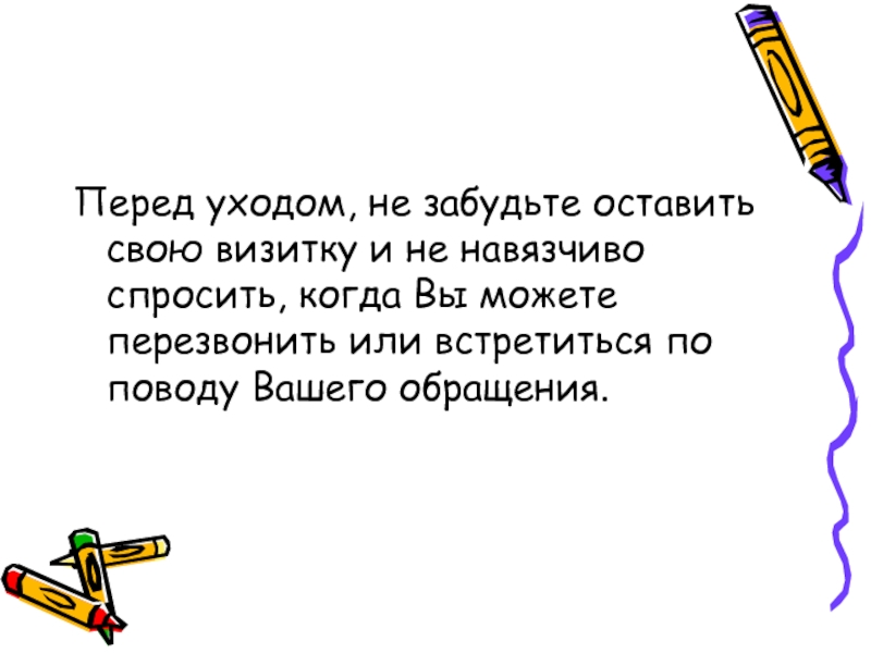 Перед уходом, не забудьте оставить свою визитку и не навязчиво
