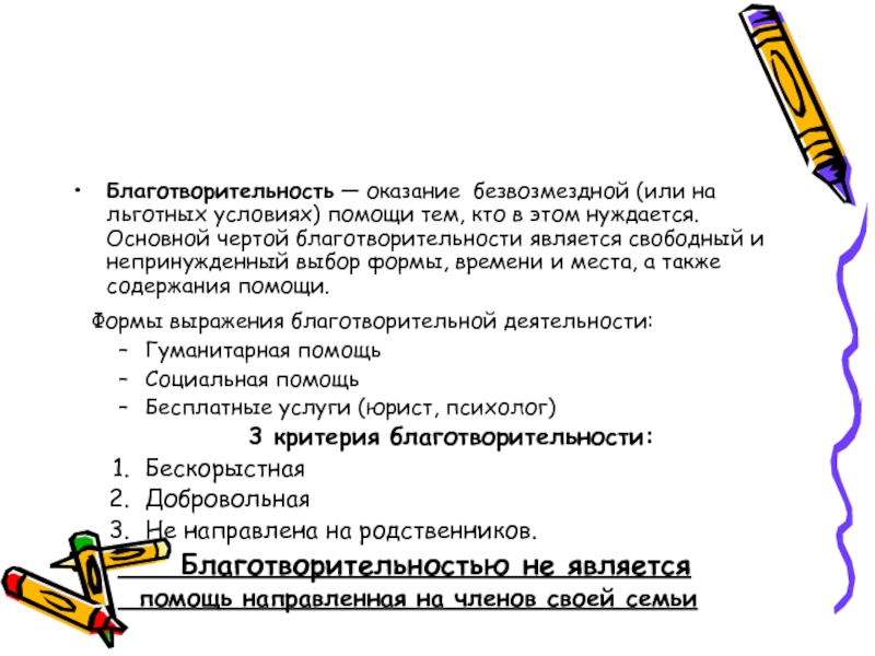 Благотворительность — оказание безвозмездной (или на льготных условиях) помощи тем, кто