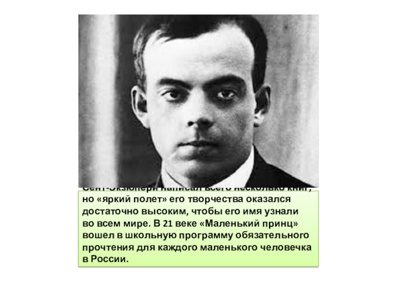 Слайд 4Сент-Экзюпери написал всего несколько книг, но «яркий полет» его творчества