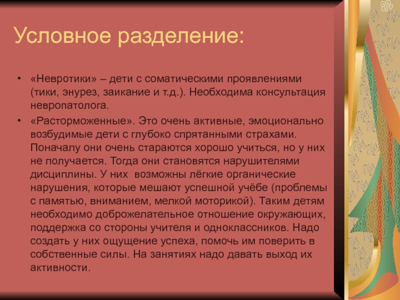 «Невротики» – дети с соматическими проявлениями (тики, энурез, заикание