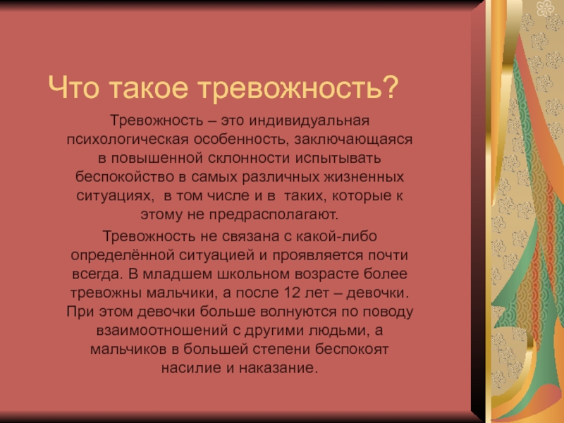 Слайд 2Что такое тревожность?