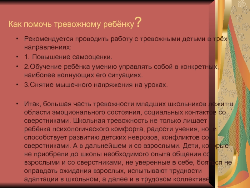 Слайд 9Как помочь тревожному ребёнку?