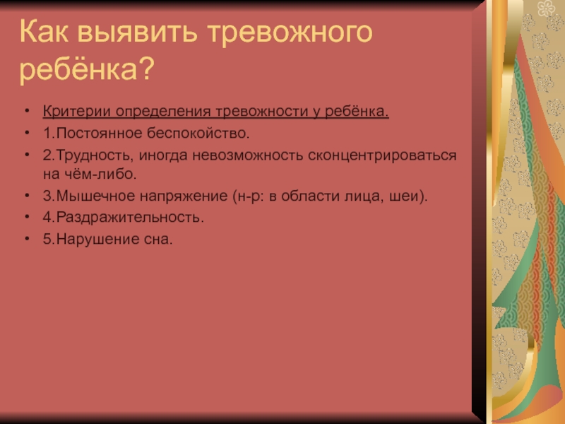 Слайд 3Как выявить тревожного ребёнка?