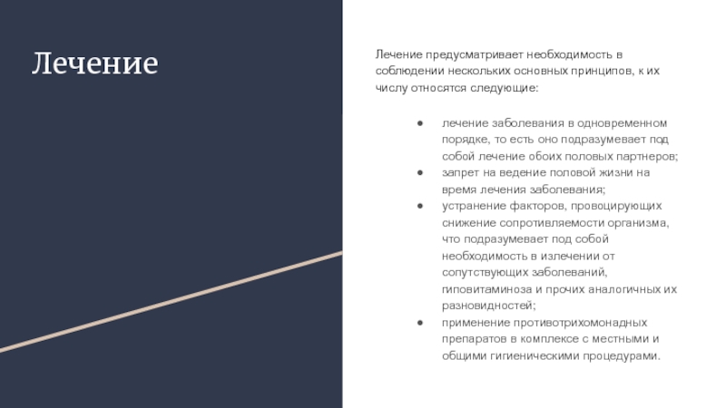 применение противотрихомонадных препаратов в комплексе с местными и общими гигиеническими процедурами.
