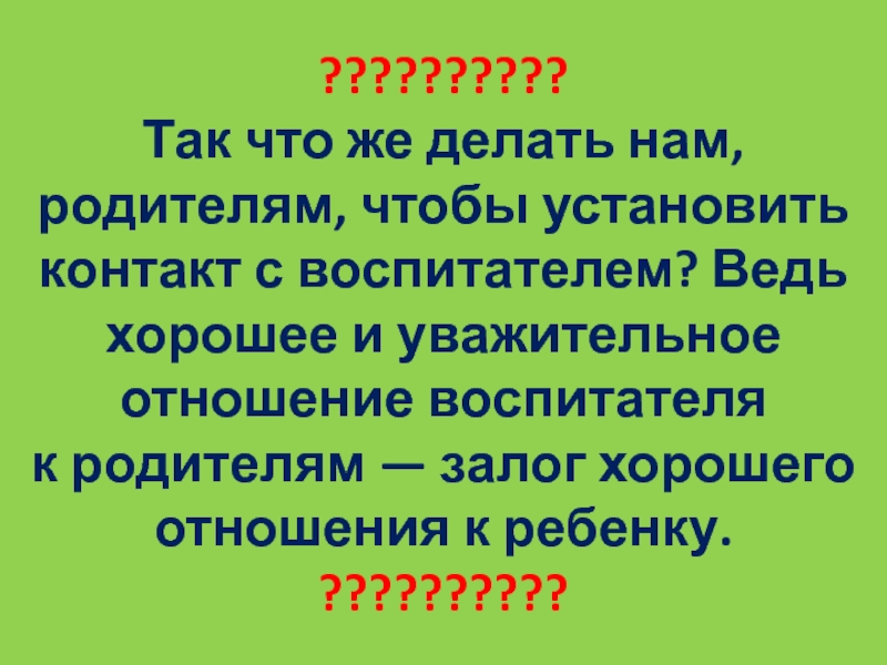 Так что же делать нам, родителям, чтобы установить контакт с воспитателем? Ведь