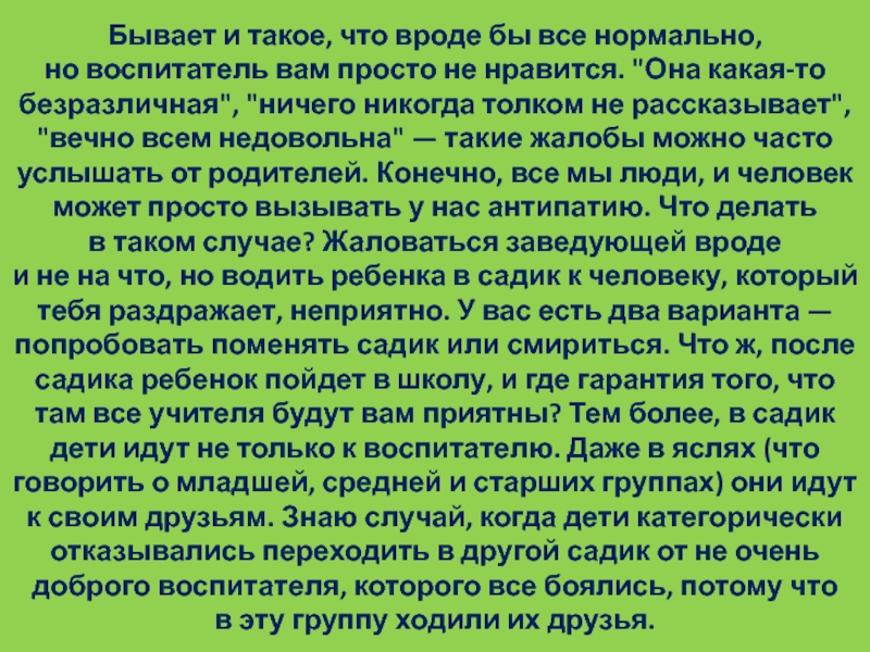 Бывает и такое, что вроде бы все нормально, но воспитатель вам просто не нравится.
