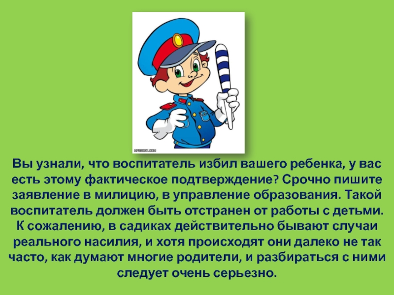 или физического насилия, первый шаг — обращение к заведующей детского сада. Очень