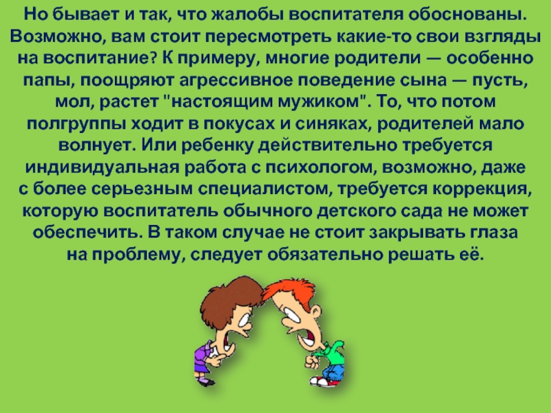 Слайд 27Но бывает и так, что жалобы воспитателя обоснованы. Возможно, вам стоит пересмотреть