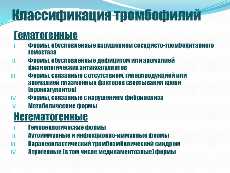 Слайд 10Гематогенные тромбофилии