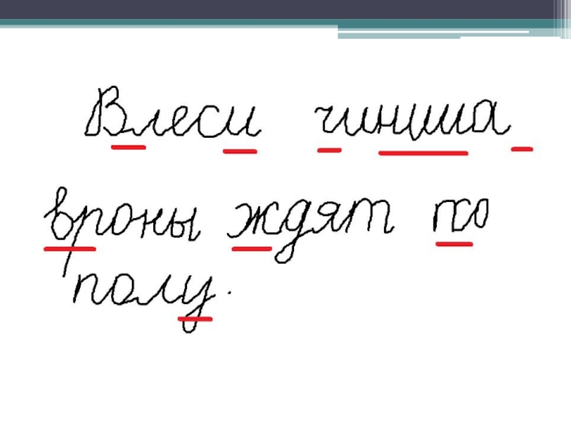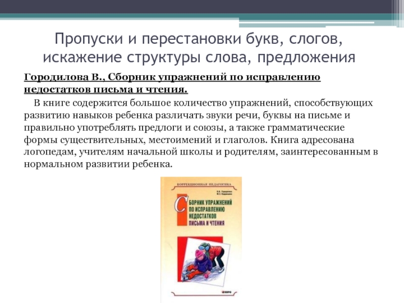 Слайд 14Пропуски и перестановки букв, слогов, искажение структуры слова, предложения