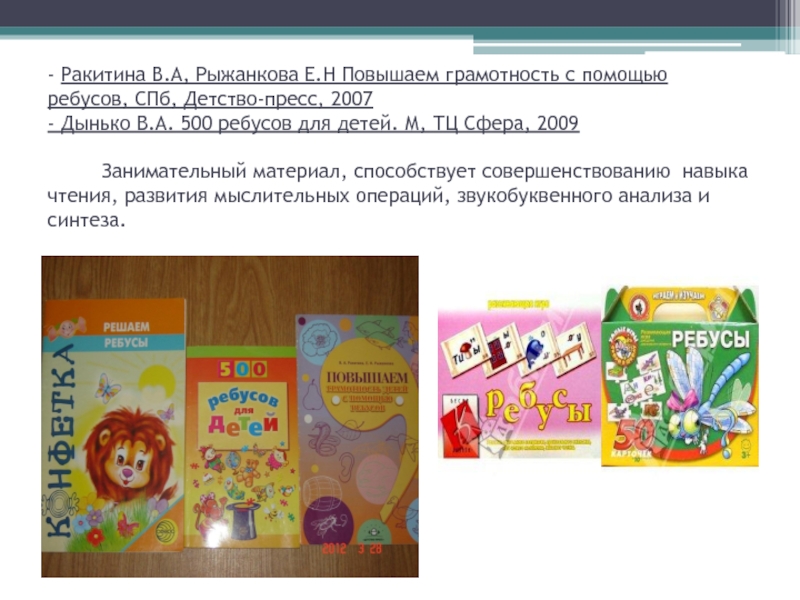 Слайд 22- Ракитина В.А, Рыжанкова Е.Н Повышаем грамотность с помощью ребусов,