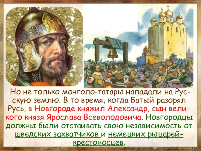 время, когда Батый разорял Русь, в Новгороде княжил Александр, сын