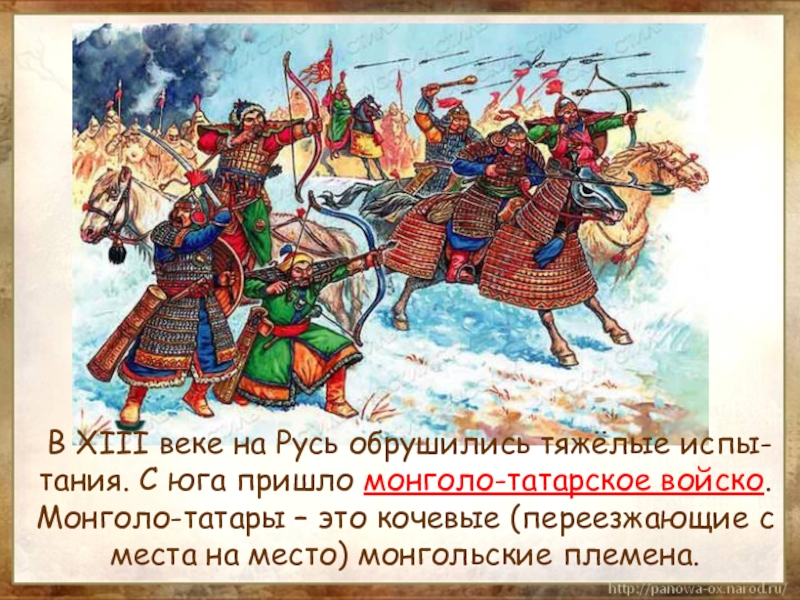 пришло монголо-татарское войско. Монголо-татары – это кочевые (переезжающие с места