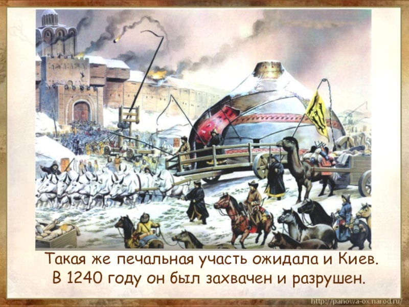 Слайд 10 Такая же печальная участь ожидала и Киев. В 1240 году