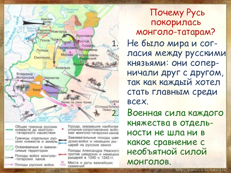 Слайд 12 Почему Русь покорилась монголо-татарам?