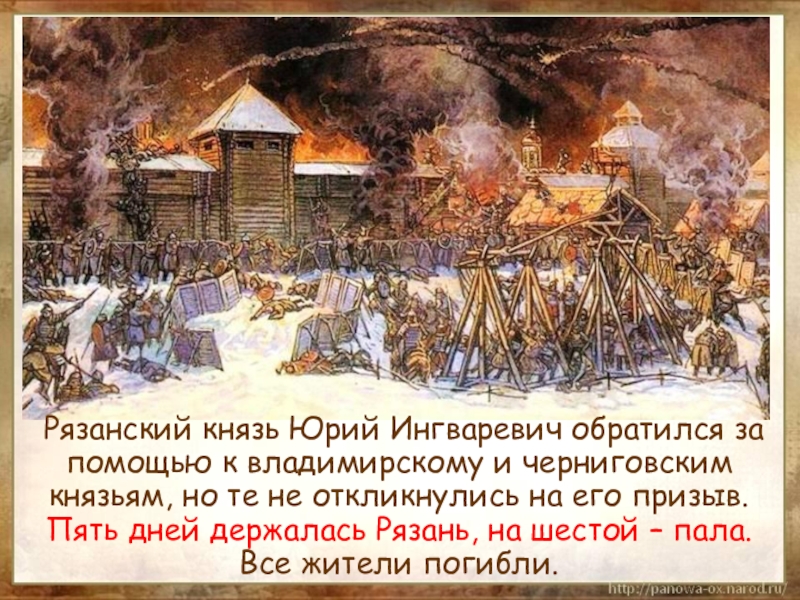 дней держалась Рязань, на шестой – пала. Все жители погибли.
