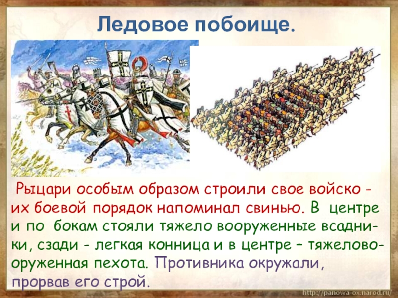 «Свинья» прорвала новгородский строй, казалось победа близка, но тут рыцари уперлись в крутой берег, а развернуться им мешали телеги из обоза.