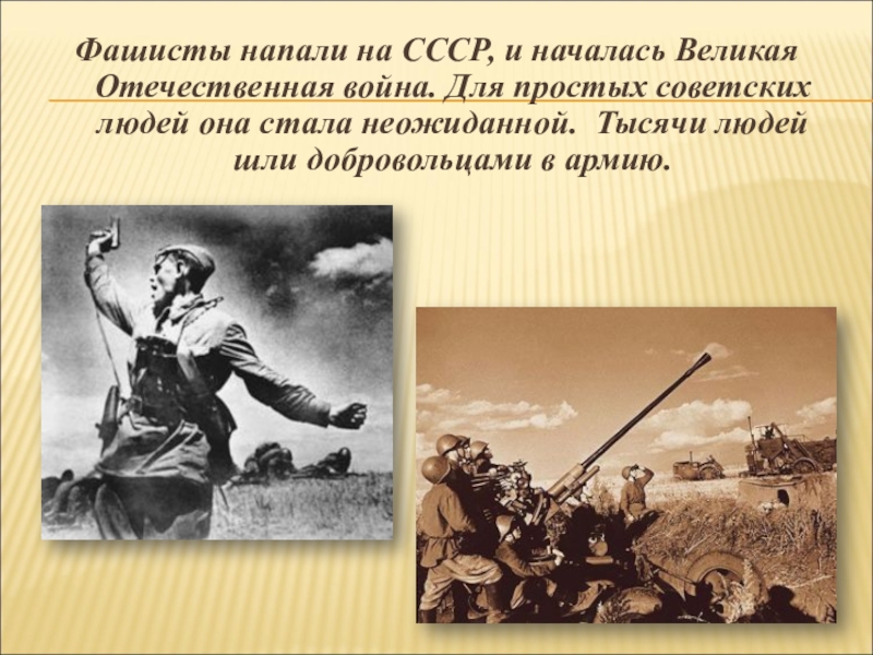 Слайд 5Фашисты напали на СССР, и началась Великая Отечественная война. Для