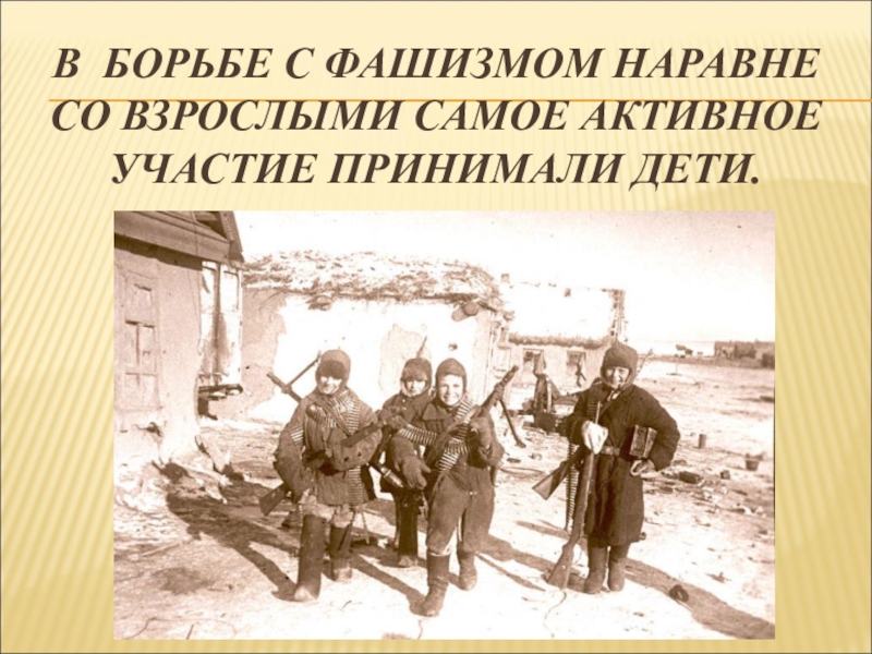 Слайд 8В борьбе с фашизмом наравне со взрослыми самое активное участие