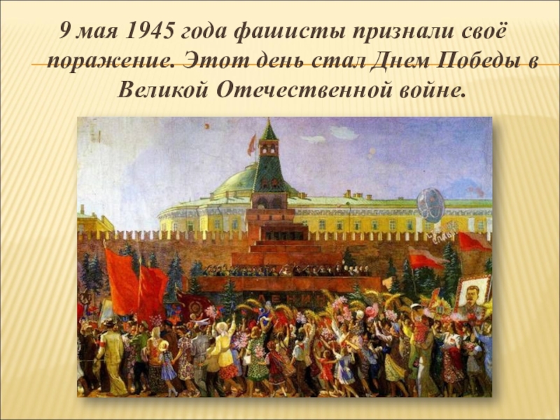 Слайд 209 мая 1945 года фашисты признали своё поражение. Этот день