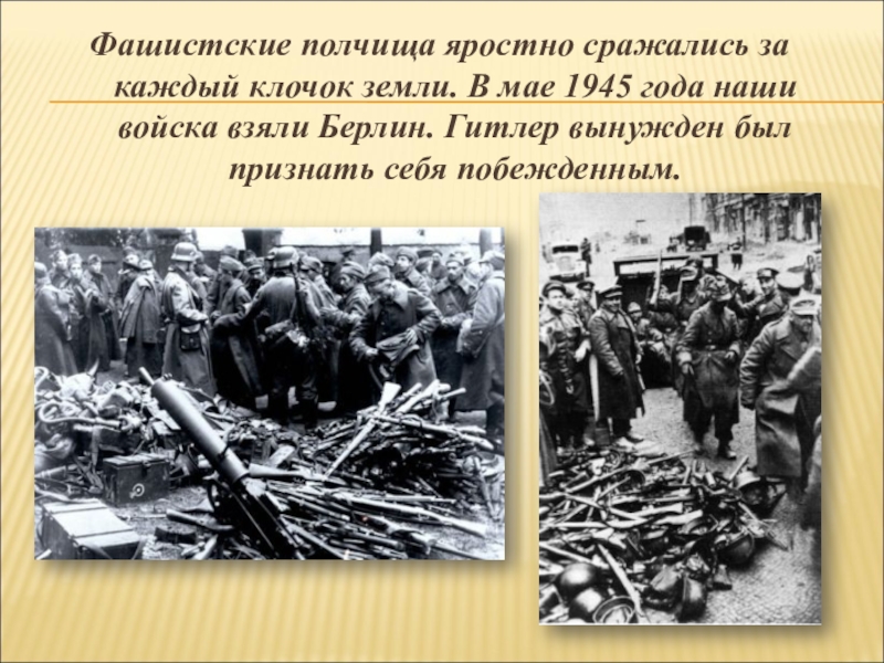 1945 года наши войска взяли Берлин. Гитлер вынужден был признать