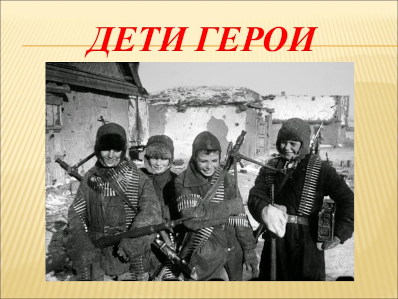 Слайд 10Мальчишки и девчонки рвались участвовать в боевых действиях. Они уходили