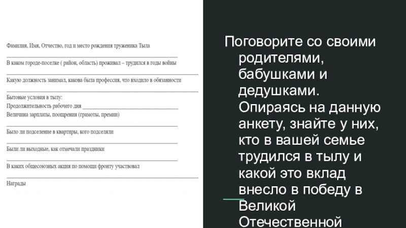 Слайд 11Поговорите со своими родителями, бабушками и дедушками. Опираясь на данную