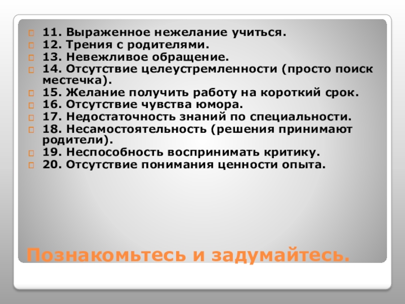 11. Выраженное нежелание учиться.