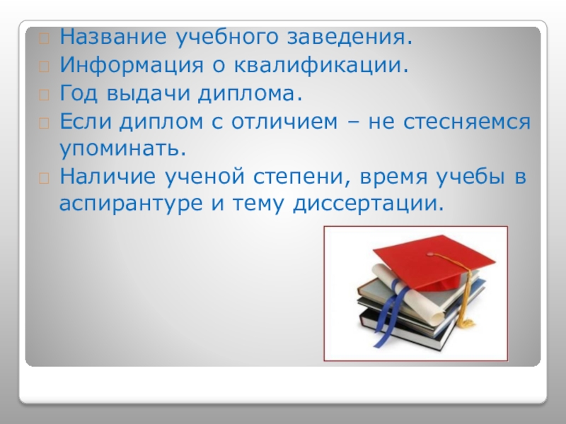 где и когда закончили, какое время учились).