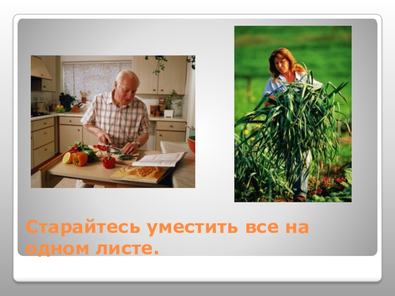 Слайд 20Старайтесь уместить все на одном листе.