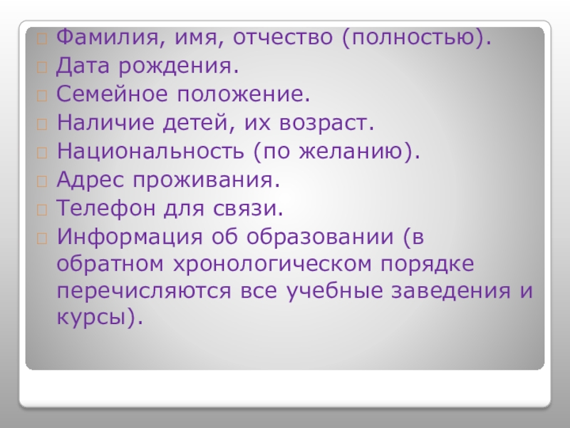 Слайд 7Фамилия, имя, отчество (полностью).
