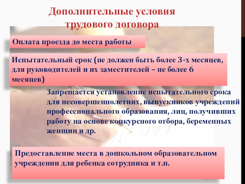 Запрещается установление испытательного срока для несовершеннолетних, выпускников учреждений профессионального образования, лиц, получивших работу на основе конкурсного отбора, беременных женщин и др.