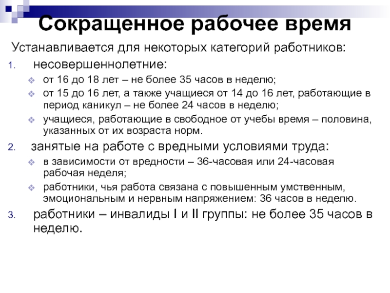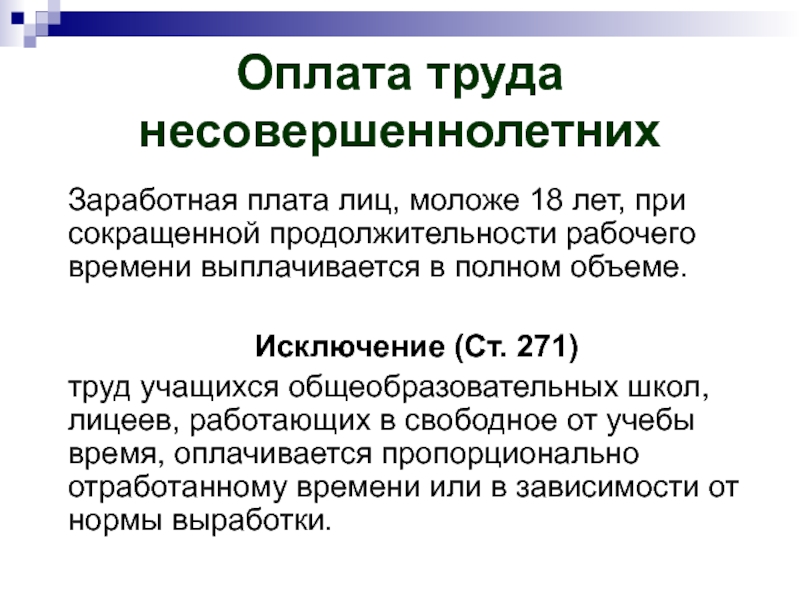 Заработная плата лиц, моложе 18 лет, при сокращенной