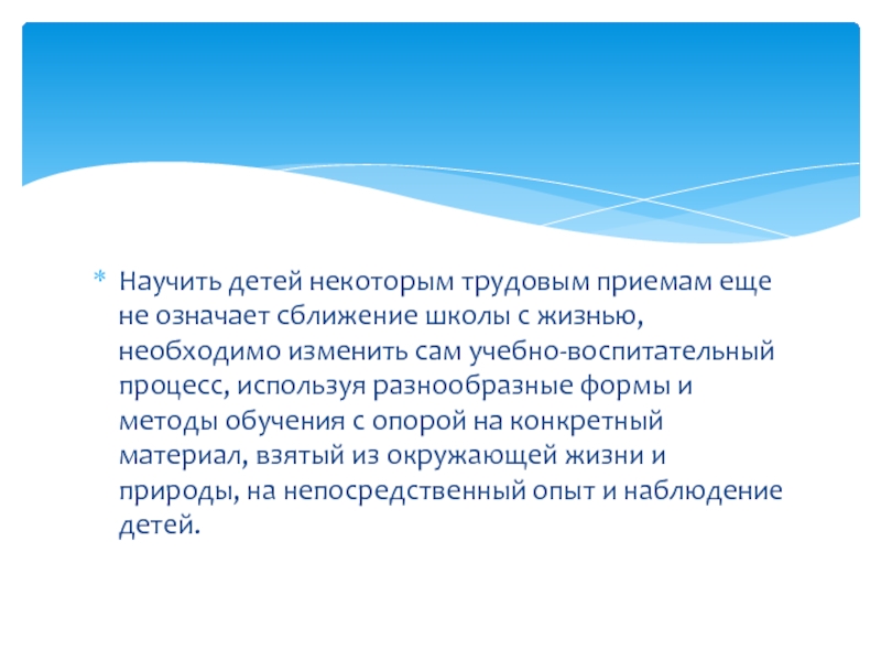 Научить детей некоторым трудовым приемам еще не означает сближение школы с жизнью, необходимо изменить сам учебно-воспитательный процесс,