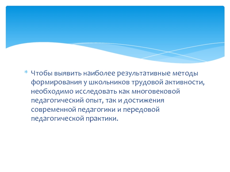 Слайд 6Чтобы выявить наиболее результативные методы формирования у школьников трудовой активности,