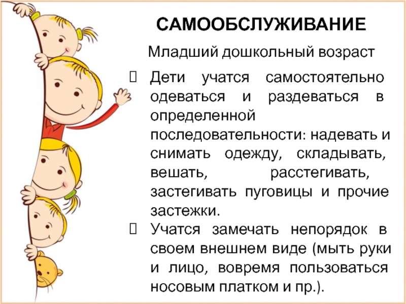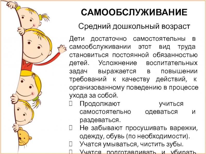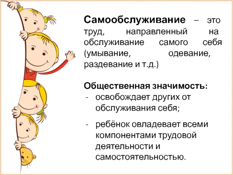 Слайд 9Самообслуживание – это труд, направленный на обслуживание самого себя (умывание,