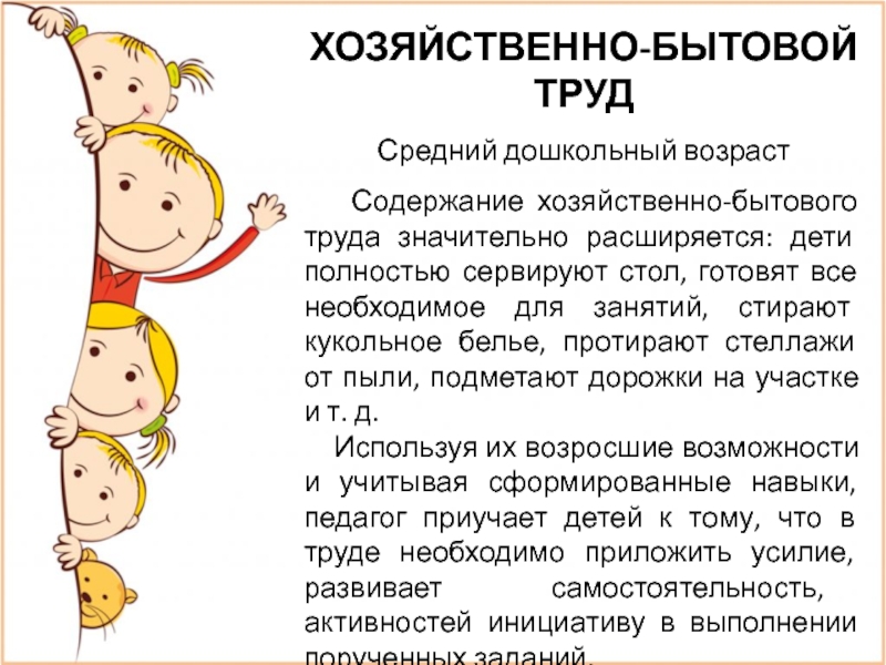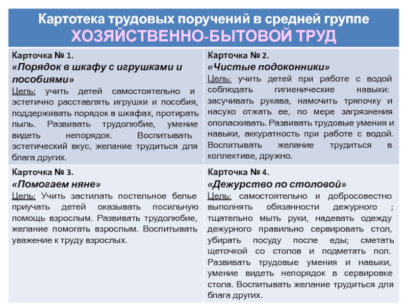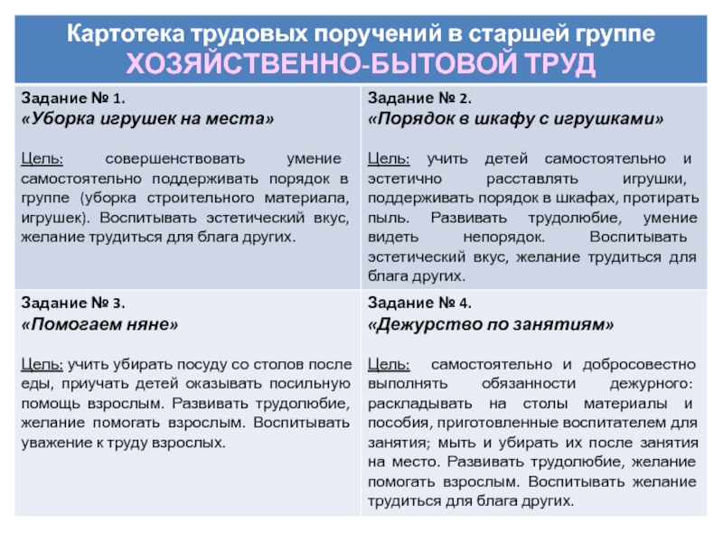 вид труда становиться постоянной обязанностью детей. Усложнение воспитательных задач выражается