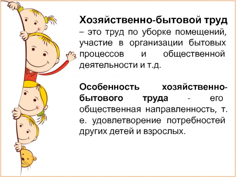 Слайд 10Хозяйственно-бытовой труд – это труд по уборке помещений, участие в