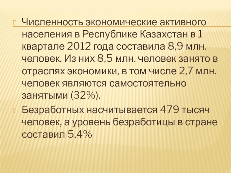 Слайд 8Численность экономические активного населения в Республике Казахстан в 1 квартале