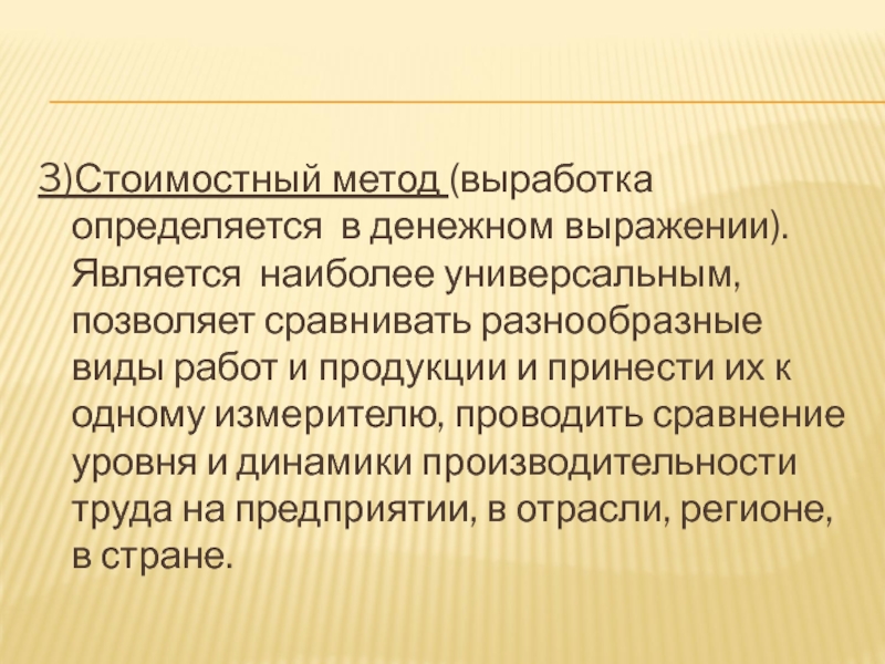 Слайд 483)Стоимостный метод (выработка определяется в денежном выражении). Является наиболее универсальным,