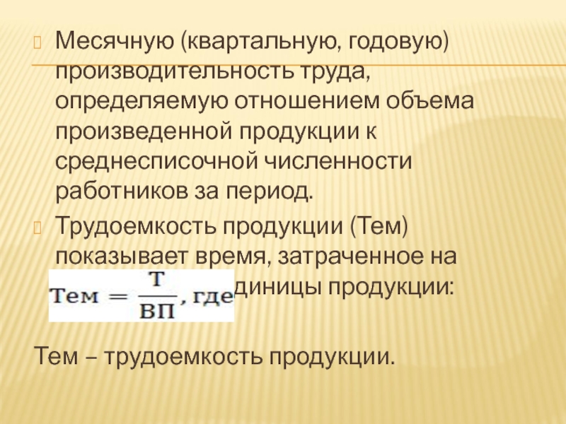 Слайд 50Месячную (квартальную, годовую) производительность труда, определяемую отношением объема произведенной продукции