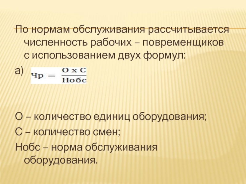 Слайд 43По нормам обслуживания рассчитывается численность рабочих – повременщиков с использованием