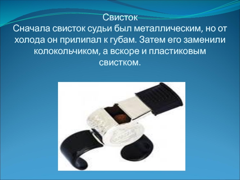 Сначала свисток судьи был металлическим, но от холода он прилипал