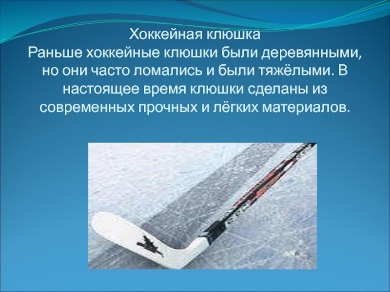 Раньше хоккейные клюшки были деревянными, но они часто ломались