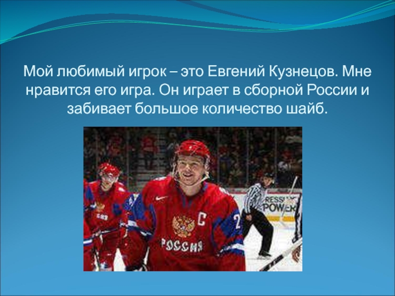 Слайд 14Мой любимый игрок – это Евгений Кузнецов. Мне нравится его