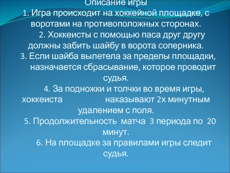 2. Хоккеисты с помощью паса друг другу должны забить шайбу в ворота соперника.