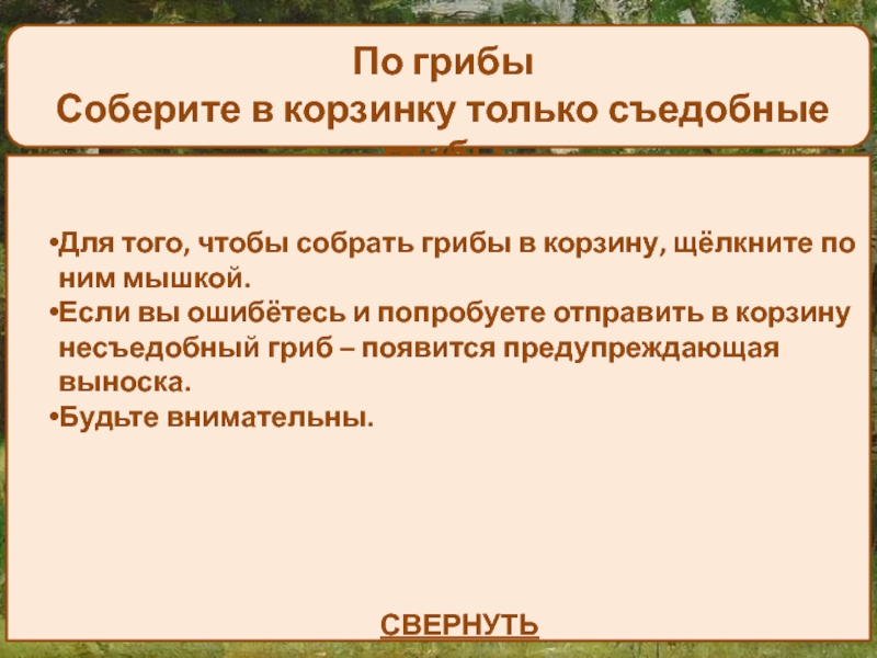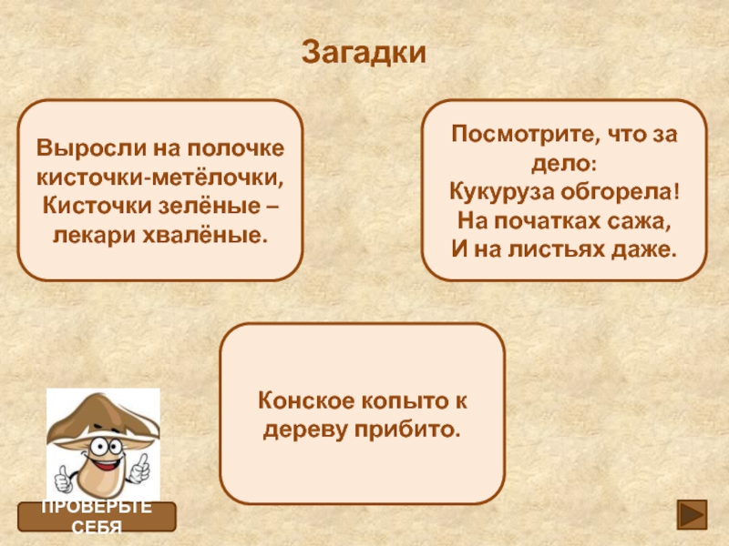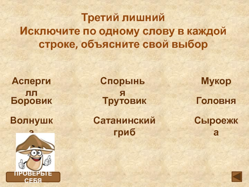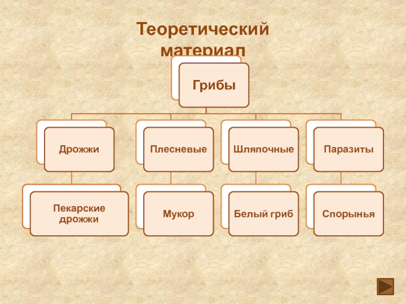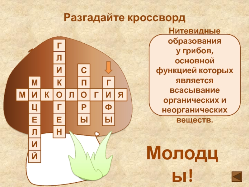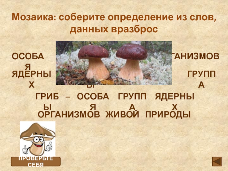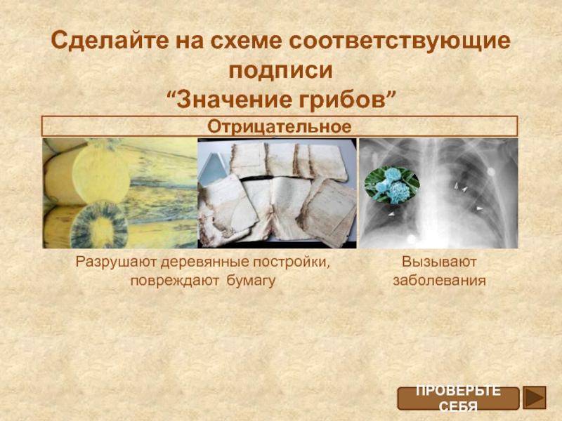 Работа с опорной схемой “Значение грибов”. Установление соответствий