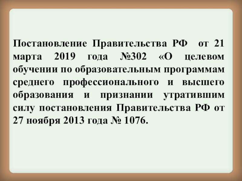 Постановление Правительства РФ от 21 марта 2019 года №302 «О целевом обучении по образовательным программам среднего профессионального и высшего образования и признании утратившим силу постановления Правительства РФ от 27 ноября 2013